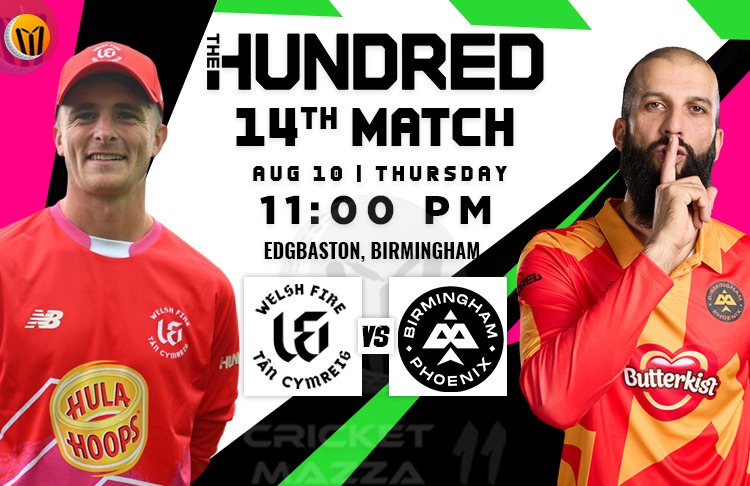 Birmingham Phoenix will face Welsh Fire in the fourteenth match of the Men's Hundred 2023 rivalry. Edgbaston in Birmingham will play host to this experience on Thursday, August 10.